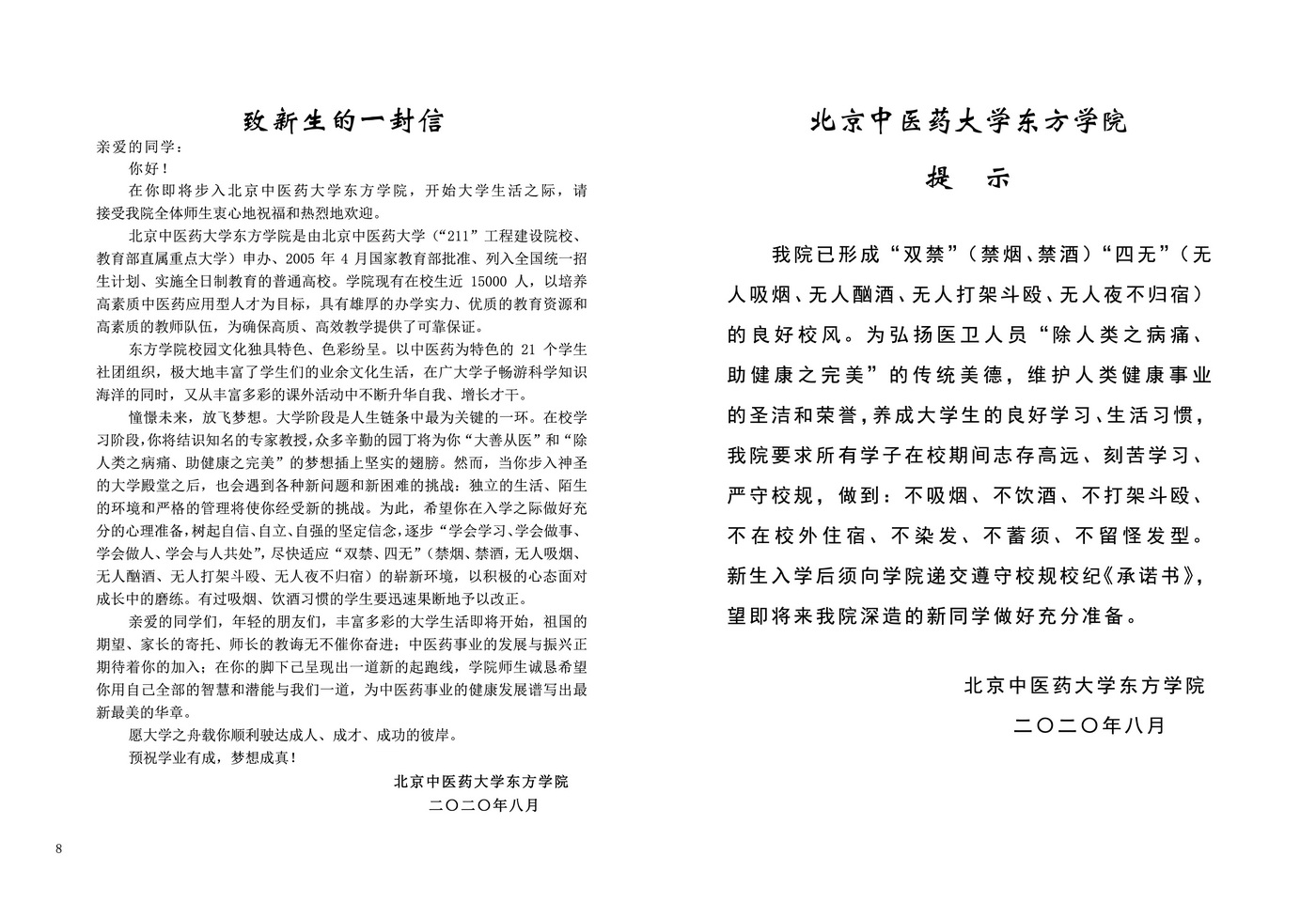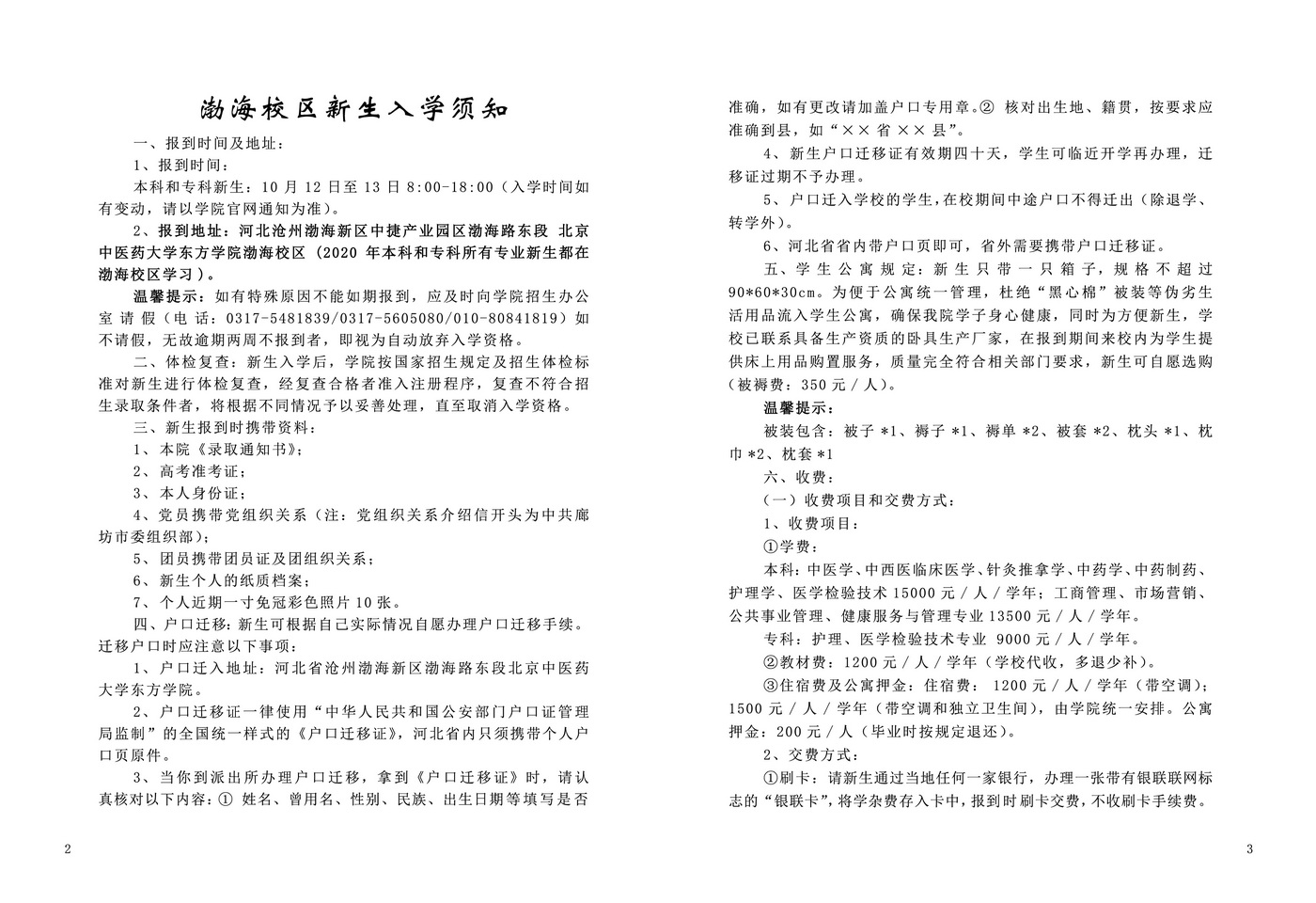 正文 2020年新生入学须知