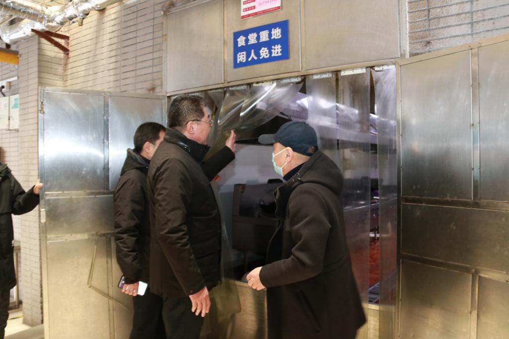 在市北校区,王亚军一行走访了各学院,详细了解教职工报到、学生返校注册准备及课程安排情况;实地检查教学楼、实验室等教学场所,查看教学设施及基础设施运行维护情况;走访了食堂、浴室、学生公寓,检查学生饮食、用水、用电、供暖等各项保障工作落实情况;了解图书馆开馆,校医院疫情防控处置、医疗服务保障及校园环境治理等情况。