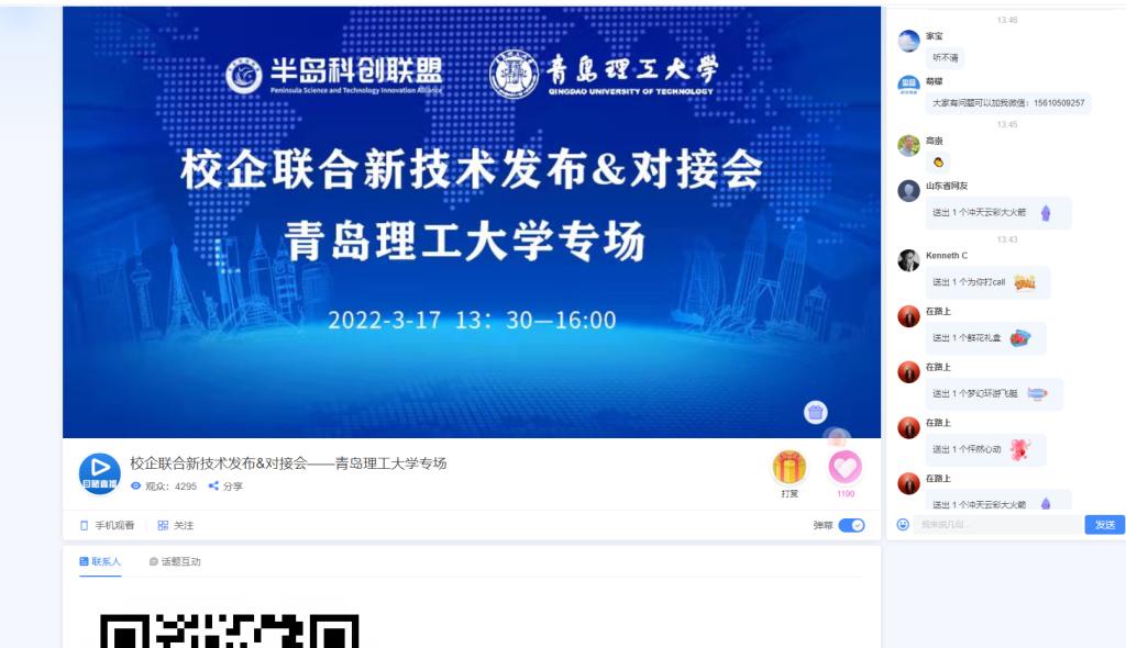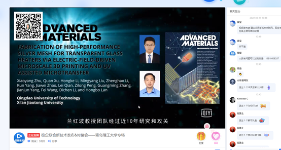 本次活动参与人数达5000余人次,观众反应良好,活动效果明显,最终促成4组成果对接,开启了必赢官网深化校地校企合作和促进学校科技成果转移转化线上对接新模式。(撰稿:张建军;审核:路成刚、乐国林)
