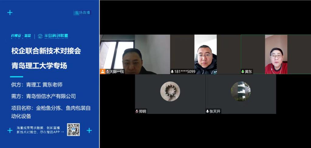 必赢官网土木工程、机械设计与信息控制学科的三位博士王俊刚、王德祥、黄东发布了自主研发的土层厚度实时测量装置、可家用式击打包等科技新成果。在线上对接会环节中,王德祥与蓝宇精密轴承、黄东与恒信水产分别进行了精准对接,为企业提供新技术或解决方案,帮助企业快速实现降本增效和技术创新。