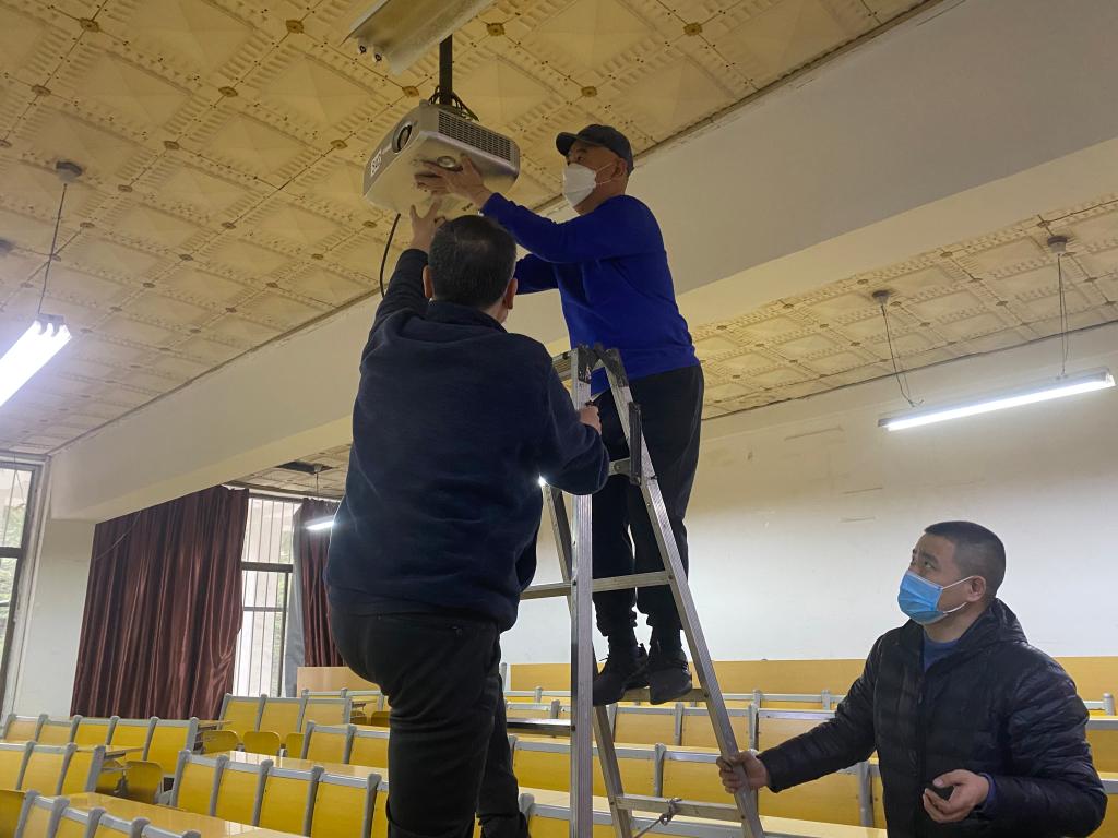 教务处、后勤管理处等职能部门积极为线上教学保驾护航,为满足学生线上学习的需求,在短短两天时间内,完成嘉陵江路校区201间多媒体教室音频设备线路改造,为两个校区243间教室的教学计算机安装好各类线上教学软件,确保学生能够在多个教室内实现线上同步学习。在线上教学启动前夕,信息化建设与管理处工作人员加班至凌晨2点,进行网络扩容改造和网络设备巡检,保障了线上教学运行平稳。