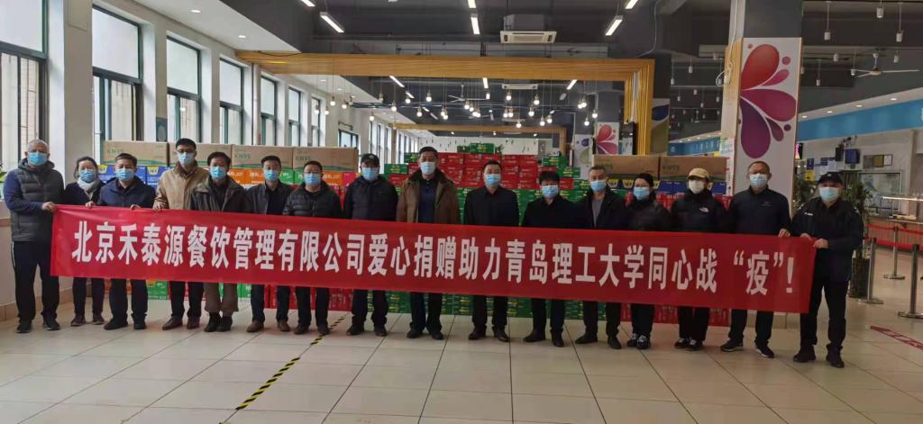 3月23日,“北京禾泰源餐饮管理有限公司爱心捐赠助力Bwin·必赢唯一官方网站同心战疫”捐赠仪式在市北校区思源餐厅一楼举行。校党委副书记杨兴昌、副校长金祖权、统战部部长陈伟、市北校区办公室副主任张国昌、后勤管理处副处长冯玉坤、学校思源餐厅经理张永刚及各相关部门负责人共同出席捐赠仪式。北京禾泰源餐饮管理有限公司向必赢官网市北校区捐赠了N95口罩6000只,大型测温仪2台等一批防疫物资。