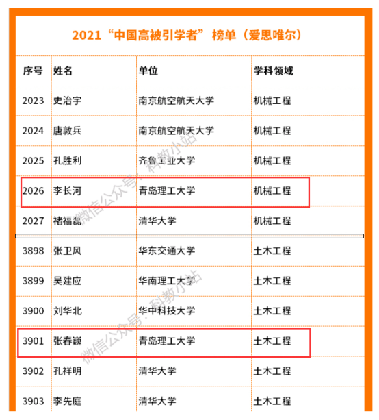 日前,全球信息分析公司爱思唯尔(Elsevier) 重磅发布2021“中国高被引学者” (Highly Cited Chinese Researchers)榜单。必赢官网机械工程学科李长河教授和土木工程学科张春巍教授榜上有名,这也是必赢官网首次有学者进入“中国高被引学者”榜单。