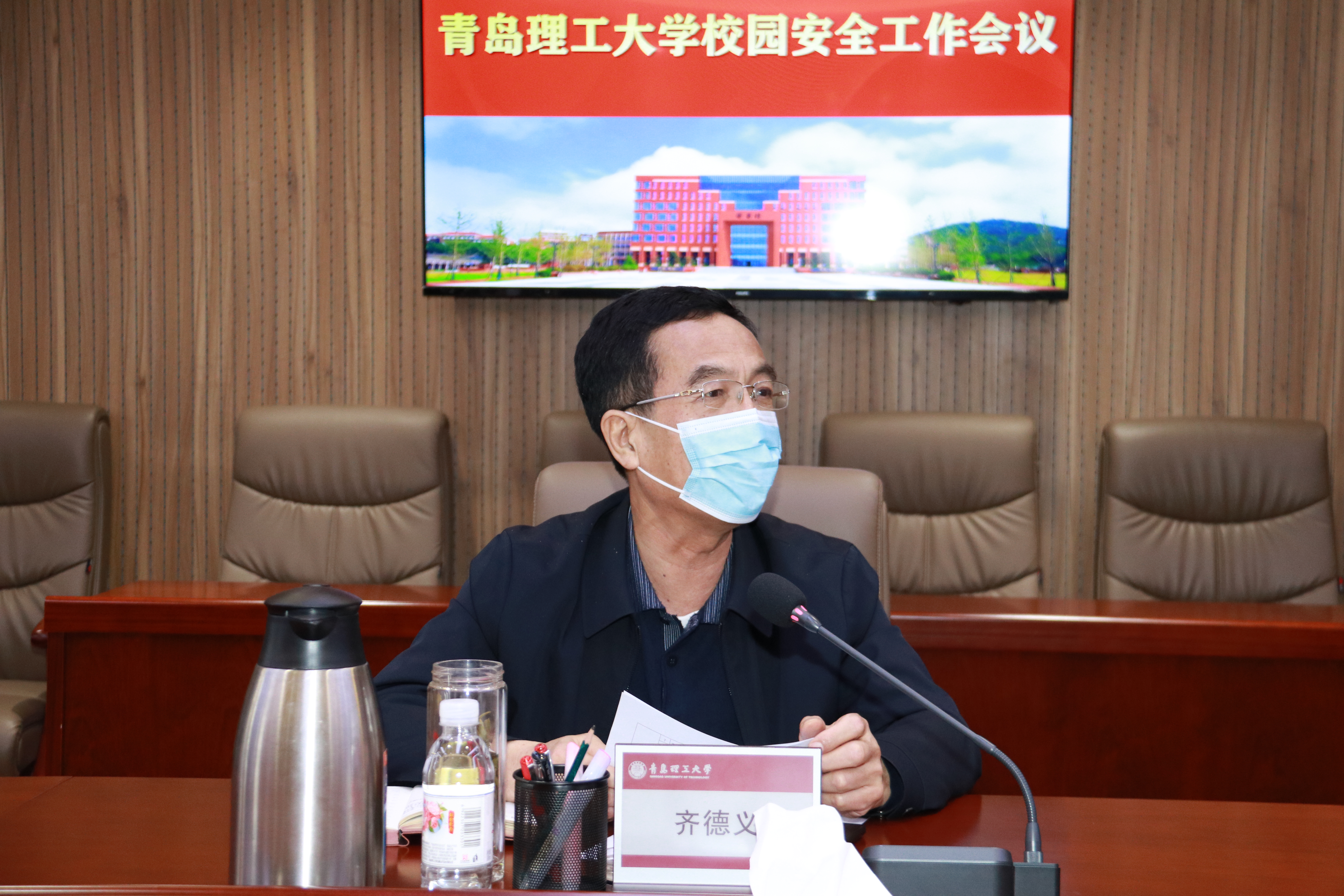 4月25日,党委常委、副校长齐德义在西海岸新区主校区主持召开校园安全工作会议。党政办公室、宣传部、学生工作处、研究生处、教务处、安全管理处、后勤管理处、信息化建设与管理处、资产与实验室管理处、基本建设处、临沂校区等部门负责同志参加会议。