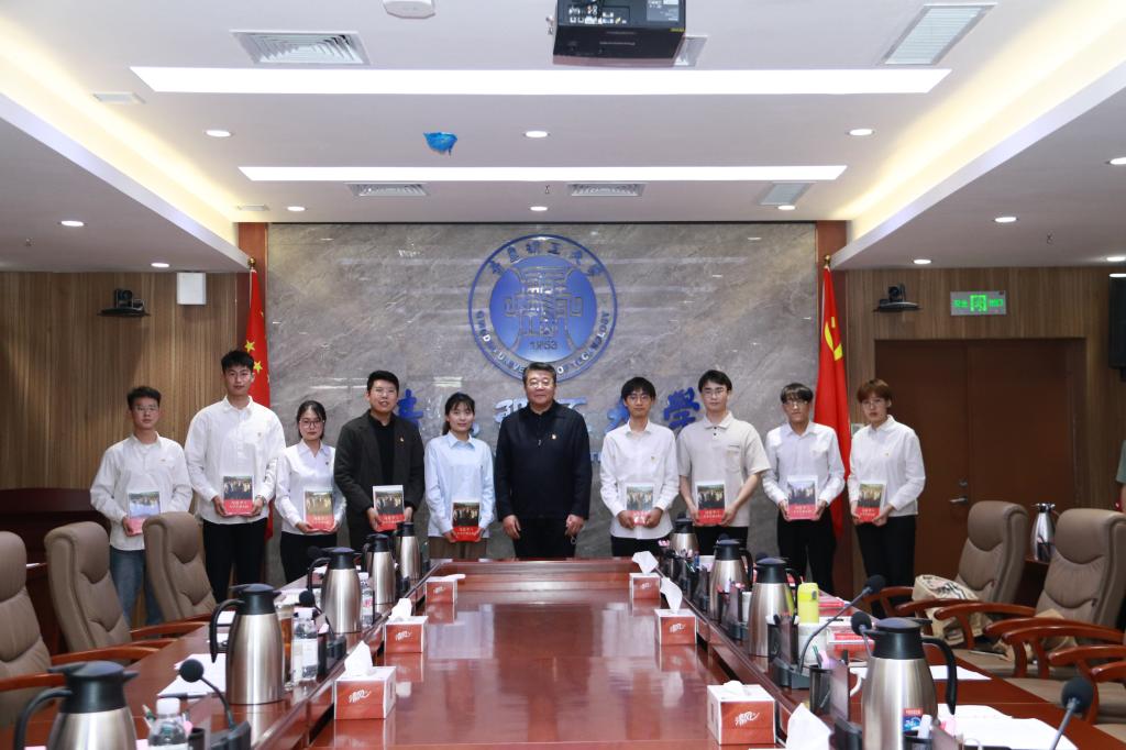 王亚军向师生代表赠送了《习近平与大学生朋友们》《新时代的中国青年》白皮书