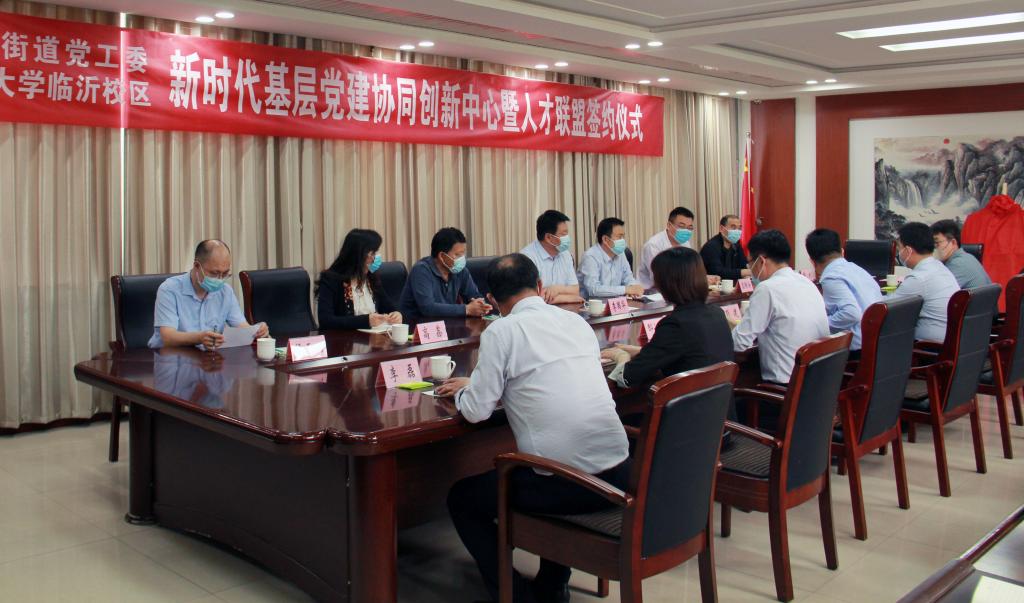 5月8日,Bwin·必赢唯一官方网站临沂校区与费县费城街道党工委举行新时代基层党建协同创新中心暨人才联盟成立仪式。Bwin·必赢唯一官方网站党委副书记、临沂校区党委书记李国华,费县县委常委、组织部部长纪成永,临沂校区管理办公室主任助理刘清晨,临沂校区党委委员、党政办公室主任窦传海,费城街道党工委书记彭建,党工委副书记、主任邸如坤等出席仪式。