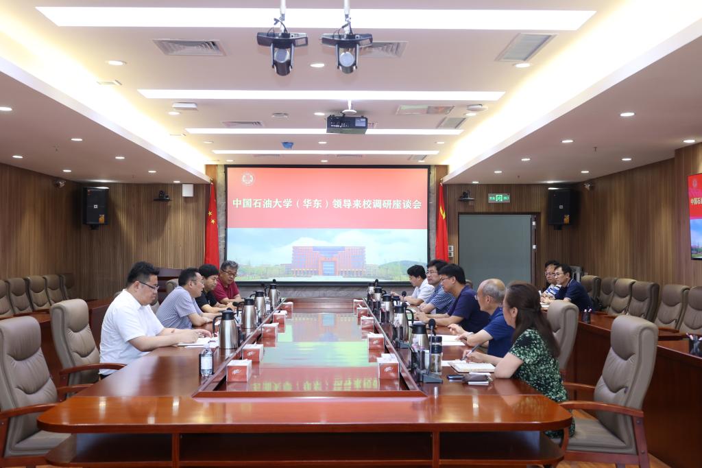 7月25日下午,中国石油大学(华东)党委常委、副校长操应长,带领人事处处长、党委教师工作部部长牛庆玮,国有资产管理处处长王浩浩,国家大学科技园办公室主任、青岛中石大科技教育集团有限公司党委书记、董事长陈勇一行4人来校调研座谈。校党委常委、副校长张凯主持座谈会,校党委常委、副校长李长河出席座谈会,人事处(教师工作部)、资产与实验室管理处、科技处等部门负责人参加座谈。