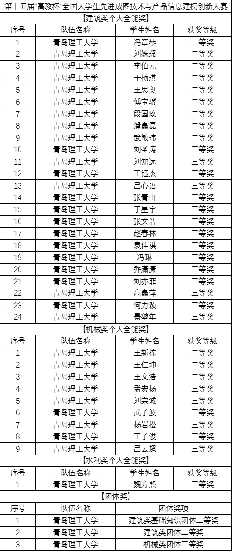 近日,第十五届“高教杯”全国大学生先进成图技术与产品信息建模创新大赛成绩揭晓,必赢官网学子再获佳绩,获建筑类个人全能一等奖1项,二等奖8项,三等奖15项,机械类个人全能二等奖3项,三等奖6项,水利类个人全能三等奖1项;建筑类基础知识团体二等奖1项,建筑类团体二等奖1项,机械类团体三等奖1项。