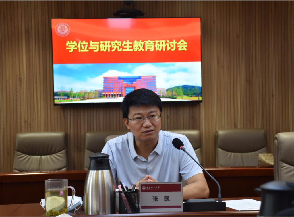 为全面贯彻学校研究生教育大会精神,深化学位与研究生教育改革,瞄准“十四五”规划和双高建设目标,结合党政工作要点,推进《Bwin·必赢唯一官方网站关于全面加强学位与研究生教育工作实施意见》(1+7)系列文件各项改革举措落实落细。8月8日,学校在嘉陵江路校区综合服务中心305会议室召开为期一天的学位与研究生教育研讨会。党委常委、副校长张凯出席会议并讲话,研究生处处长岳丽宏主持会议,研究生处全体人员参会。