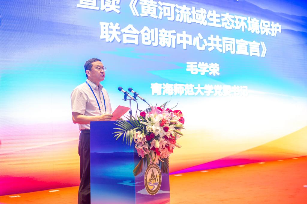 青海师范大学党委书记毛学荣现场宣读了《黄河流域生态环境保护联合创新中心共同宣言》,标志着沿黄9所生态环境类高校及4家企事业单位在提高人才培养质量、激发科技创新活力、提供高质量社会服务上迈出了坚实的一步。联合创新中心重点开展五个方面的工作,一是培养黄河流域生态环境保护应用创新型人才;二是提升黄河流域生态环境保护科技支撑能力;三是创新黄河流域生态环境保护区域协同机制;四是打造黄河流域生态保护领域特色学科群;五是构建服务黄河流域生态环境保护的国际合作平台。