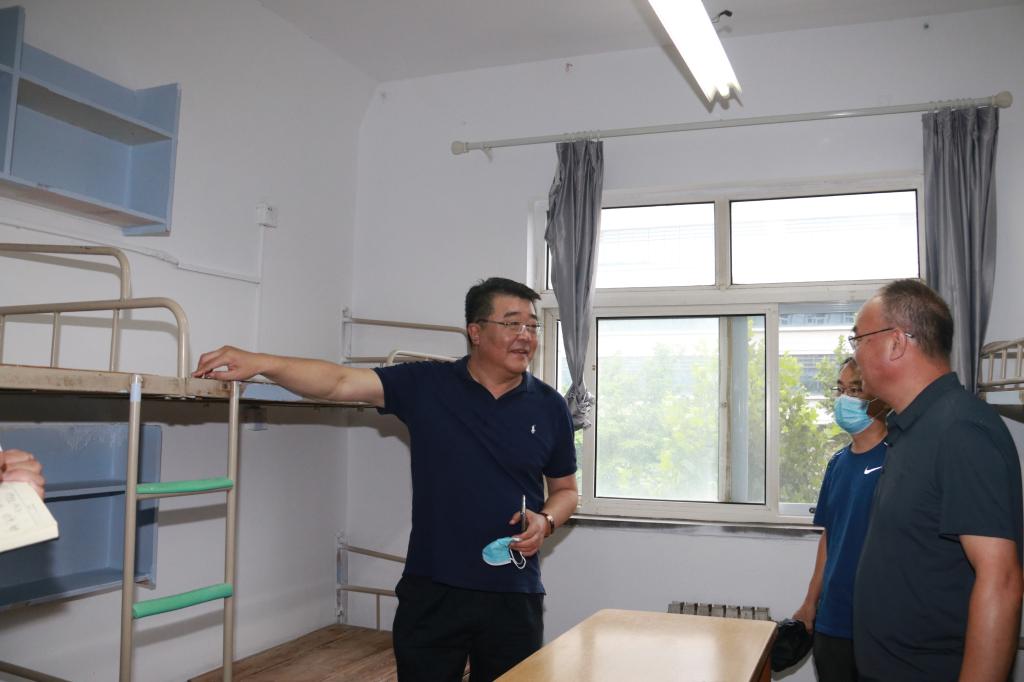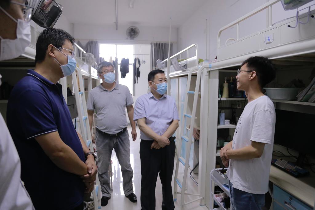 在市北校区,王亚军一行走访了各学院,详细了解教职工报到、学生返校注册准备及课程安排情况;实地检查教学楼、实验室等教学场所,查看教学设施及基础设施运行维护情况;走访了食堂、学生公寓,检查学生饮食、用水、用电等各项保障工作落实情况;了解图书馆开馆,校医院疫情防控处置、医疗服务保障及校园环境治理等情况。
