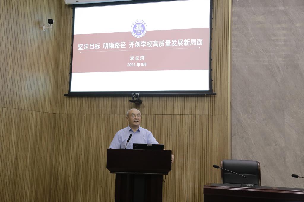 党委常委、副校长李长河作了题为《坚定目标明晰路径开创学校高质量发展新局面》的报告。李长河在报告中精准分析了学校高质量发展道路上的瓶颈与短板,进一步明确了学校内涵式高质量发展的目标和路径举措。他指出,全校各部门、单位要立足本单位职责,加强系统协同推进教育改革,创新工作机制,深入研究各项目评审规则与审核标准,超前谋划,有效集聚各方资源,以一往无前的奋斗姿态扛稳扛实责任,更加坚定信心、鼓足干劲,攻坚克难,全力推动学校高质量发展。