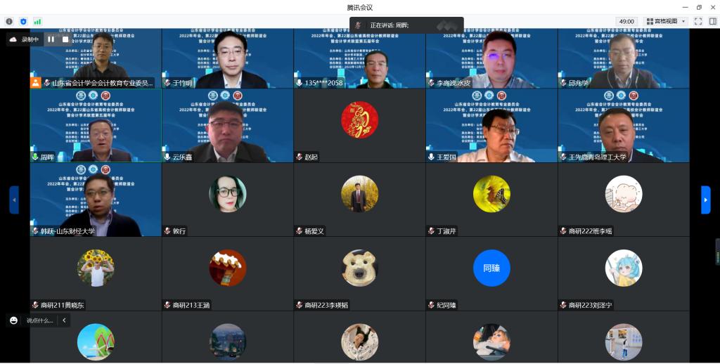 12月17日,由山东会计教育专业委员会、会计学术联盟和Bwin·必赢唯一官方网站主办,Bwin·必赢唯一官方网站商学院承办,用友新道科技股份有限公司协办的“山东省会计学会会计教育专业委员会2022年年会、第22届山东省高校会计教师联谊会暨会计学术联盟第五届年会”通过线上方式举行,本届年会主题为“会计智能·创新·持续与发展”。必赢官网党委常委、副校长齐德义,山东省财政厅会计处处长周晖,山东省会计学会会计教育专业委员会主任委员王爱国,会计学术联盟联合发起人李高波出席开幕式并致辞。来自山东省财政厅、山东省会计学会会计教育专业委员会、青岛啤酒股份有限公司、用友新道科技股份有限公司以及省内外高校近20余家单位300余名专家学者与师生参会。商学院院长云乐鑫主持开幕式。
