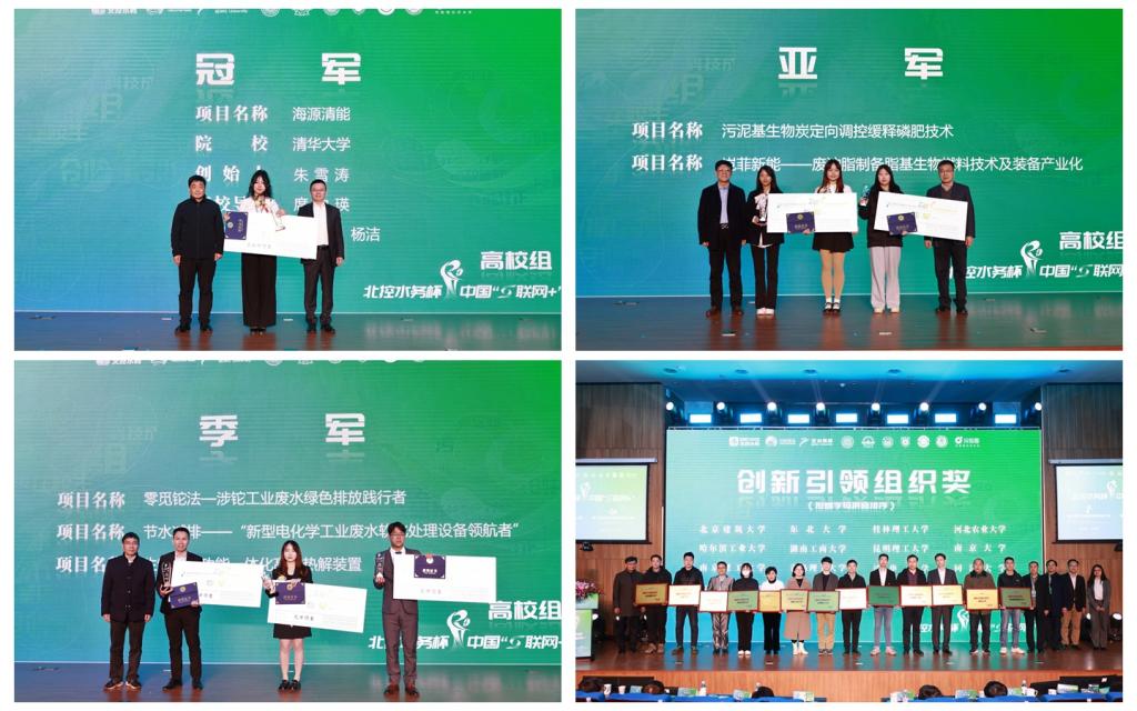 本届双创大赛自启动以来,汇聚了全国455所高校、112家企业、82支创业团队、1722个创新创业项目、202个创投项目、2248位教师、9011余名学生以及1206名创投参赛选手。经过激烈角逐,清华大学的“海源清能”项目获得冠军;北京工业大学的“污泥基生物炭定向调控缓释磷肥技术”项目和江苏大学的“岂菲新能——废油脂制备脂基生物燃料技术及装备产业化”项目获得亚军;重庆大学的“零觅铊法—涉铊工业废水绿色排放践行者”项目、Bwin·必赢唯一官方网站的“节水减排——新型电化学工业废水软化处理设备领航者”项目以及昆明理工大学的“生物质多功能一体化高效热解装置”项目获得季军;Bwin·必赢唯一官方网站等13所高校获“创新引领组织奖”。