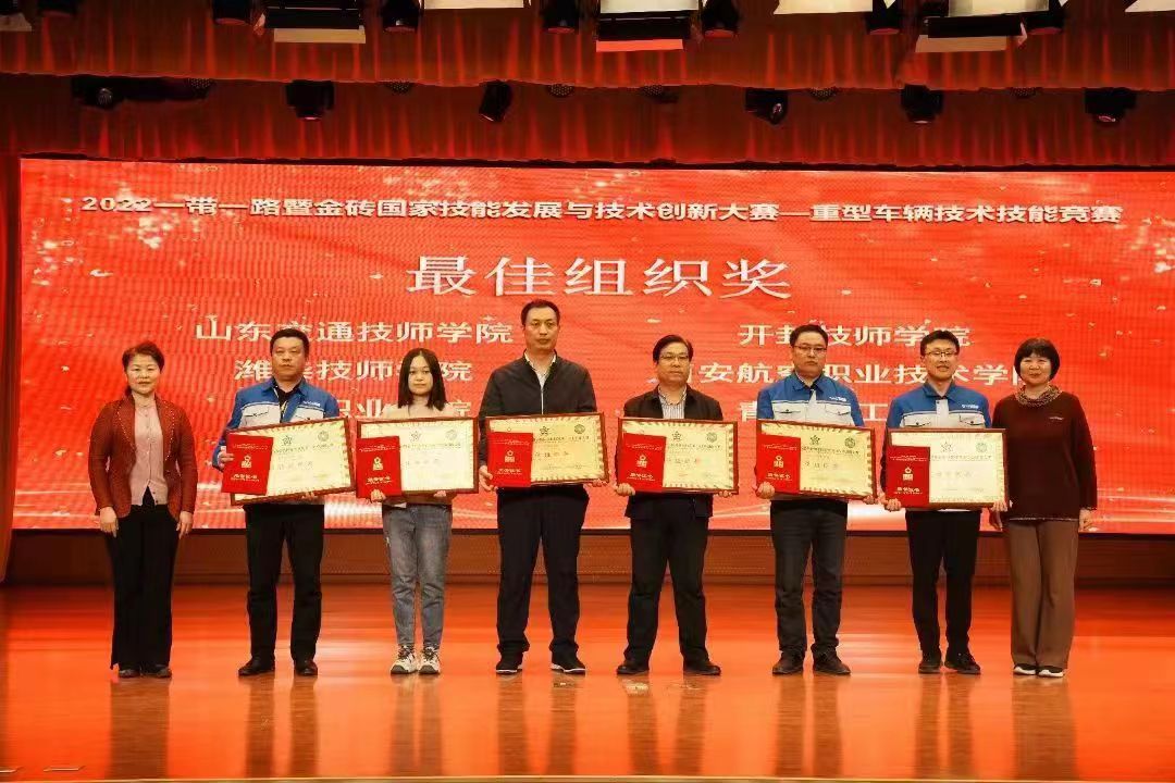 3月28日到4月1日,2022一带一路暨金砖国家技能发展与技术创新大赛之重型车辆技术技能竞赛全国总决赛在山东济南举办。必赢官网潍柴现代产业学院2019级学生孙成群同学在众多选手中脱颖而出喜获一等奖,现代产业学院获得本赛事最佳组织奖。
