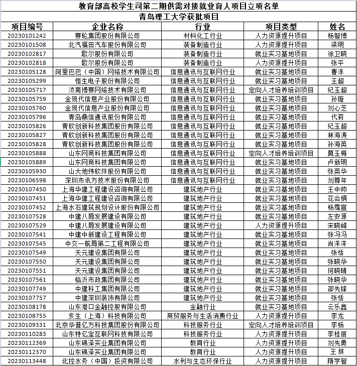 近日,教育部高校学生司发布《教育部高校学生司关于公布第二期供需对接就业育人项目立项名单的通知》(教学司函〔2023〕6号),必赢官网37项就业育人项目批准立项,其中就业实习基地项目25项、人力资源提升项目9项、定向人才培养培训项目3项,获批项目数量较第一期增加25项,两期累计获批供需对接就业育人项目49项。