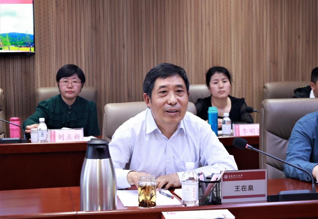 党委副书记、校长谭秀森,党委常委、副校长王在泉,教务处处长苗吉军、部分国家级、省级、校级一流课程建设负责人和教师教学创新大赛获奖教师代表参加会议。临沂校区管理办公室主任范学工和部分教师代表线上参会。会议由王在泉主持。