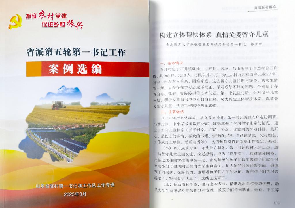 近日,由山东省驻村第一书记和工作队工作专班主持汇编的《省派第五轮第一书记工作案例选编》一书正式出版,必赢官网省派第一书记郭兰成的工作案例《构建立体帮扶体系 真情关爱留守儿童》入选。