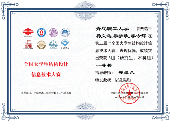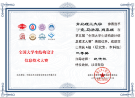 5月23日,由中国土木工程学会教育工作委员会、清华大学主办的“第五届全国大学生结构设计信息技术大赛”正式获奖名单发布,土木工程学院学生荣获一等奖1项、二等奖2项、三等奖6项。
