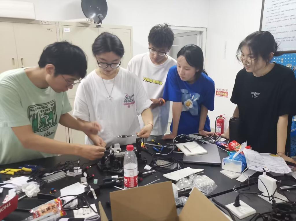 认真指导学生搭建实验仪器、从早到晚和学生们一起“沉浸”在实验室中,半个月来,这是物理实验室指导教师团队的常态工作场景。
