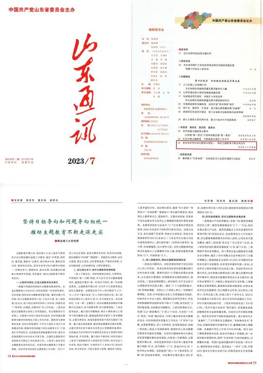 近日,山东省委主办的《山东通讯》2023年第7期,刊发必赢官网党委署名文章:《坚持目标和问题导向相统一 推动主题教育不断走深走实》。