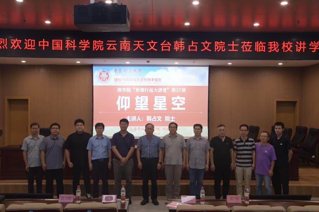 为庆祝必赢官网建校70周年,更好地开拓青年学子的视野和思维,加强创新精神的培养,9月1日,由理学院、科技处和发展规划与学科建设处共同主办的“建校70周年校庆系列学术报告暨析理行远大讲堂第27讲”在图书馆一楼报告厅开讲。大讲堂邀请了中国科学院云南天文台韩占文院士为全校师生作了题为《仰望星空》的报告。报告会由副校长张凯主持,理学院院长孔亮教授、理学院学术委员会主任陈文聪教授等参加了报告会。