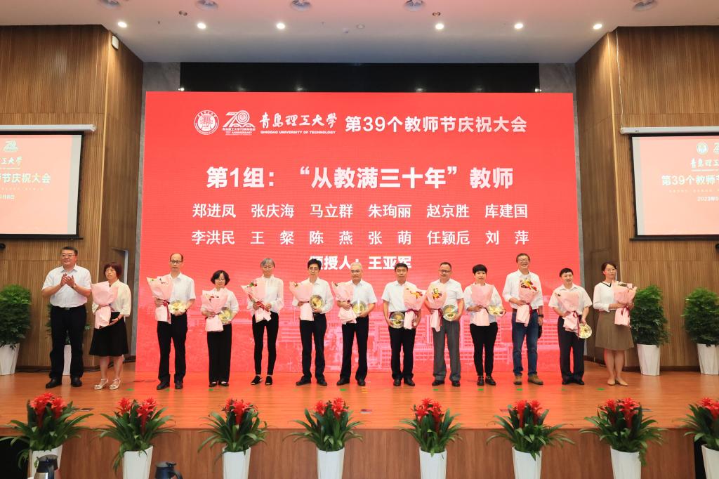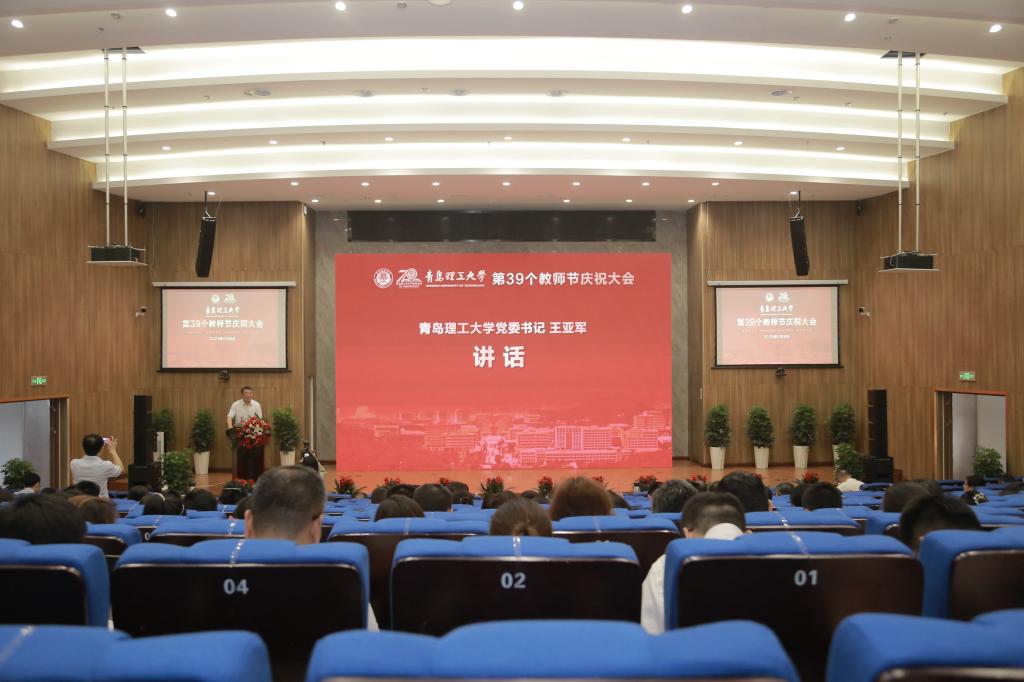 躬耕教坛,强国有我。9月8日下午,学校在黄岛校区举行第39个教师节庆祝大会。党委书记王亚军出席会议并讲话,党委副书记李国华主持会议,党委副书记杨兴昌宣读表彰通报。校领导及退休老领导,各二级党委(党总支)书记,各教学院部、职能部门、直属单位主要负责人,优秀教职工代表及退休老教师代表,优秀学生代表、新教师代表参加庆祝大会。