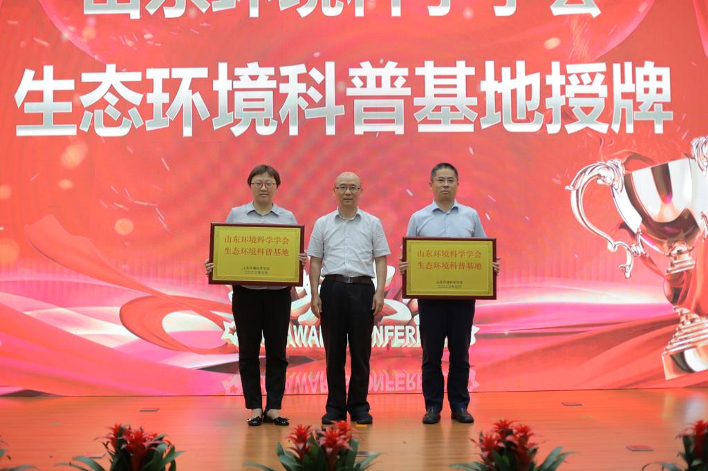 与会领导为山东环境科学学会生态环境科普基地、山东环境科学学会噪声与振动专业委员会授牌