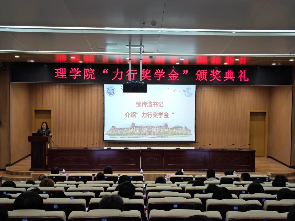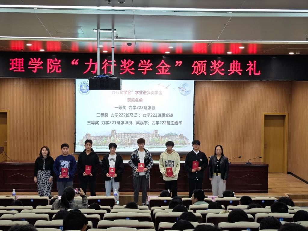 为表彰工程力学学科的优秀学子,激励青年学生勤奋学习、全面发展,同时纪念和传承孙可明教授致力工程力学专业建设和发展的愿望,理学院特别设立“力行奖学金”。11月8日下午,学院在黄岛校区举办首批获奖学生颁奖典礼。学校党委常委、副校长、力学学科带头人王在泉,理学院党委书记邹传波、党委副书记、副院长纪玉超以及力学教研室全体教师出席颁奖典礼。理学院党委副书记、院长孔亮主持典礼。