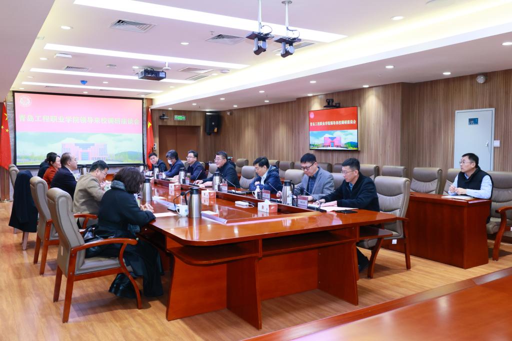 11月17日下午,青岛工程职业学院党委副书记、院长李群,党委委员、副院长高桥,党委委员、纪委书记曹显春等一行5人来校调研并座谈交流。学校党委书记王亚军主持座谈会,党委常委、纪委书记、监察专员尹东峰,党委常委、副校长陈连军出席座谈会,党政办公室、教务处、合作发展处等相关部门负责同志参加座谈。