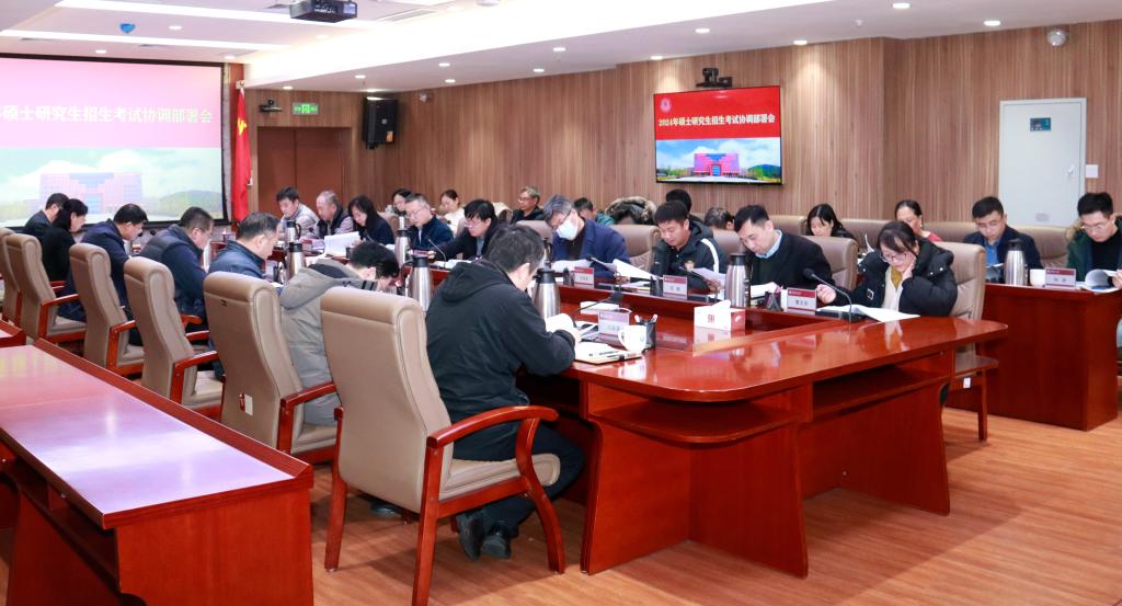 12月15日下午,学校在黄岛校区综合服务中心305会议室召开2024年硕士研究生招生考试协调部署会。学校党委书记王亚军主持会议并讲话,党委常委、副校长、研究生院院长张凯,学校研究生招生工作领导小组成员、相关部门负责人及研究生院工作人员参加会议。