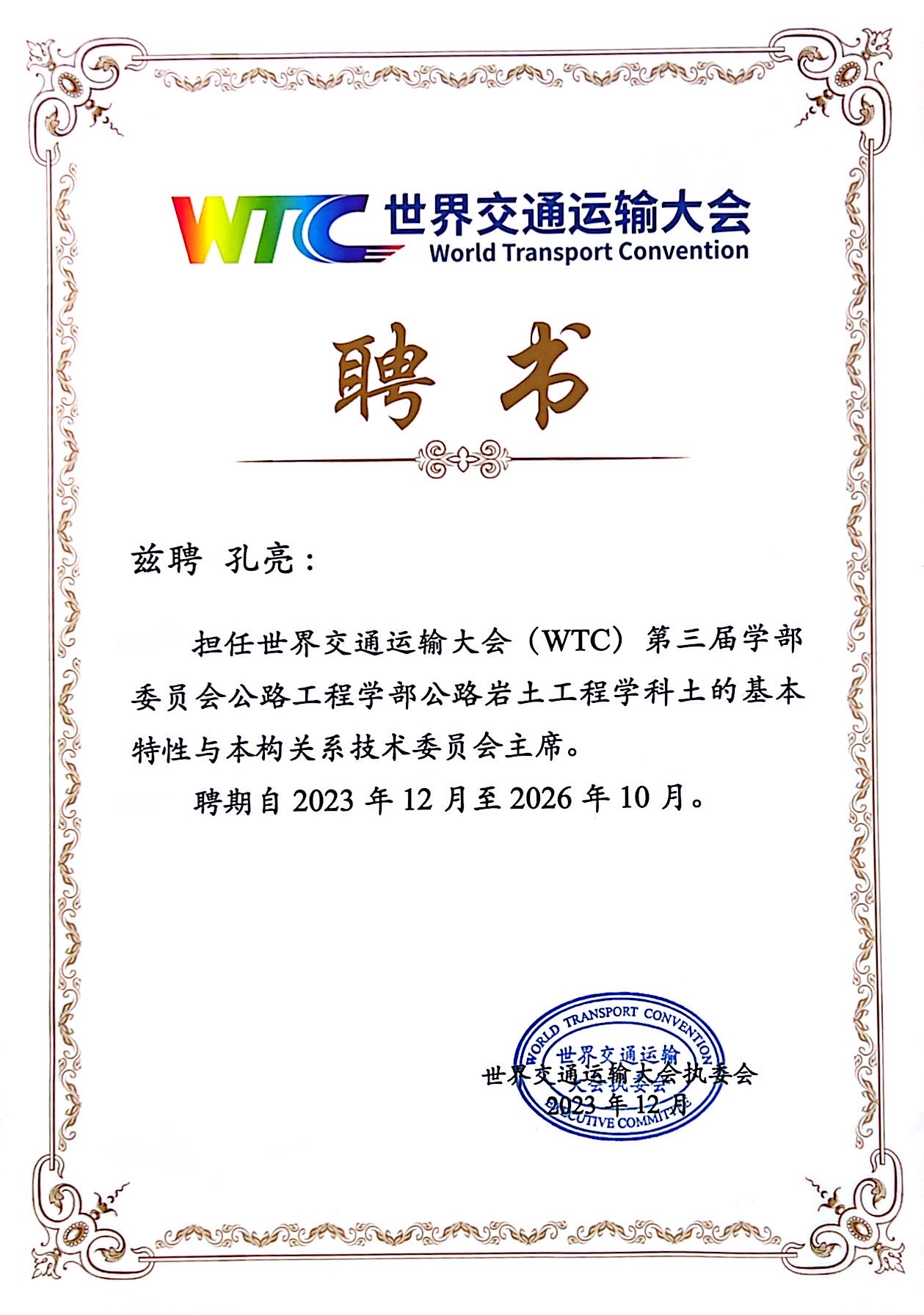 世界交通运输大会创办于2017年,是经国务院批准,由中国科学技术协会、交通运输部、中国工程院共同主办,中国公路学会承办,国内外交通运输科技组织共同支持的国际性交通运输领域学术会议和成果展示平台。2024年世界交通运输大会拟于2024年6月在青岛举行,下一步,孔亮将组建“土的基本特性与本构关系技术委员会”,开展相关工作,促进学术交流与行业科技进步。(撰稿:牛庚、缪玉松;审核:邹传波、孔亮)