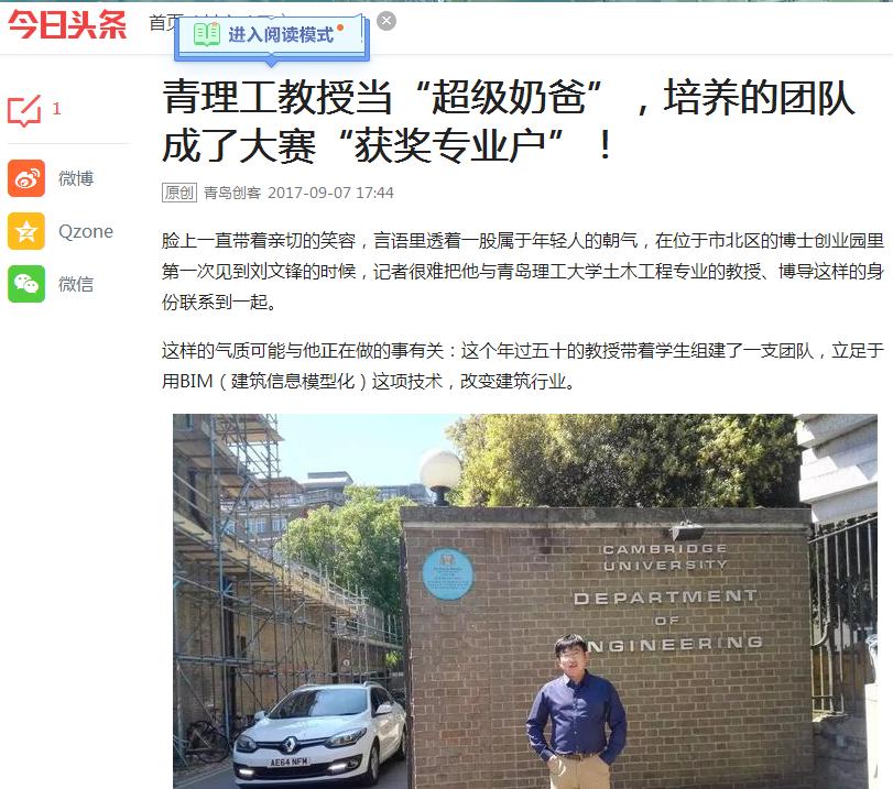 这样的气质可能与他正在做的事有关:这个年过五十的教授带着学生组建了一支团队,立足于用BIM(建筑信息模型化)这项技术,改变建筑行业。