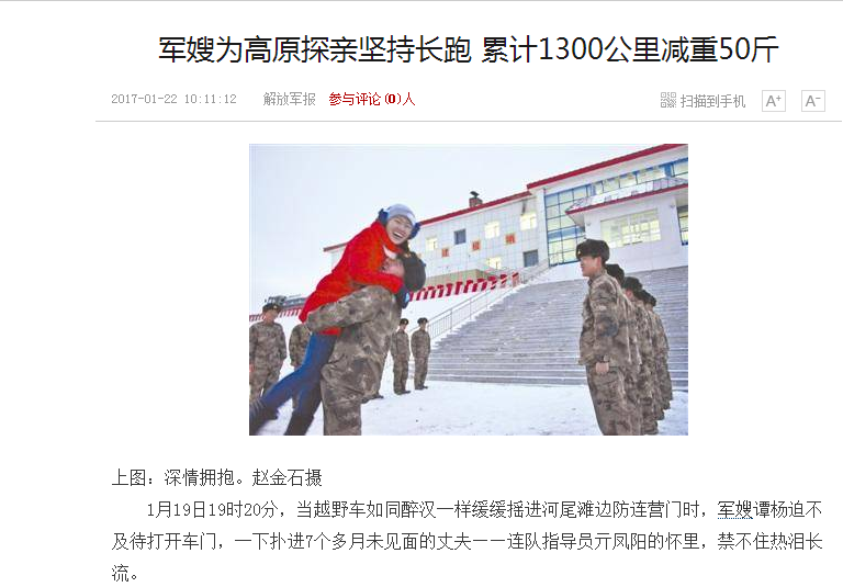 1月19日19时20分,当越野车如同醉汉一样缓缓摇进河尾滩边防连营门时,军嫂谭杨迫不及待打开车门,一下扑进7个多月未见面的丈夫——连队指导员亓凤阳的怀里,禁不住热泪长流。