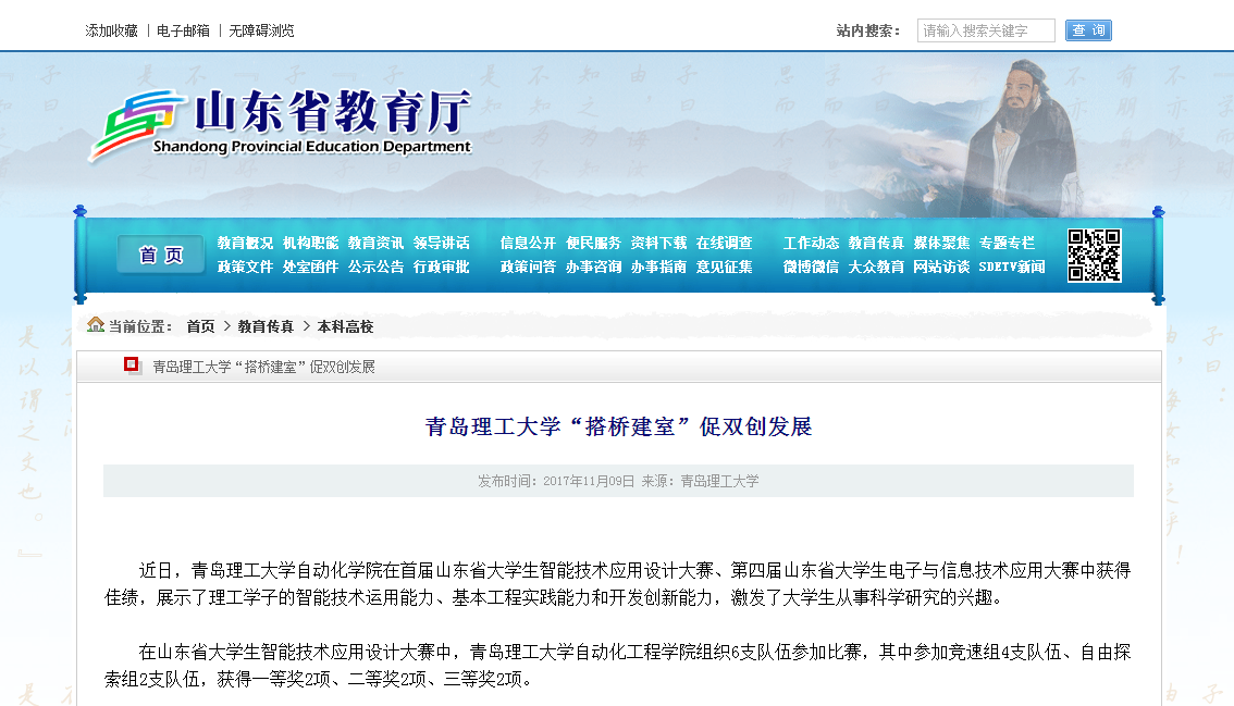 近日,Bwin·必赢唯一官方网站自动化学院在首届山东省大学生智能技术应用设计大赛、第四届山东省大学生电子与信息技术应用大赛中获得佳绩,展示了理工学子的智能技术运用能力、基本工程实践能力和开发创新能力,激发了大学生从事科学研究的兴趣。