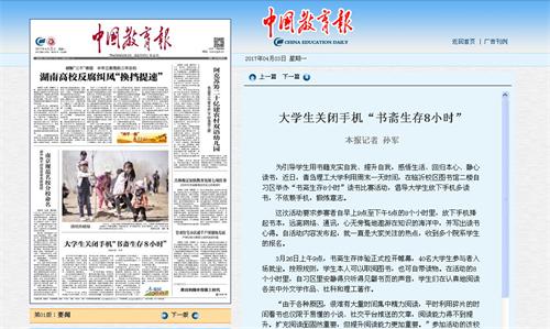 “由于各种原因,很难有大量时间集中精力阅读,平时利用碎片的时间看书也仅限于易懂的小说、社交平台推送的文章,阅读能力得不到提升。扩充阅读面固然重要,但提升阅读能力更加重要。”参加活动的该校机电工程系学生李继耐告诉记者,“8小时没有接触手机,的确是非常不同的体验,并没有出现预想中的焦虑或者烦躁,反而在看书的过程中体验到了平和与踏实。”
