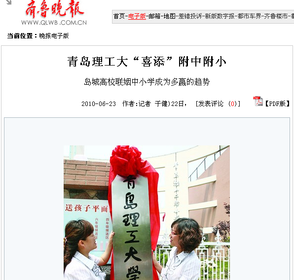 据了解,中学与高校牵手,做大学的附中,近年来在岛城盛行。2004年,隶属于青岛市教育局的青岛39中挂牌中国海洋大学附属中学,成为岛城首家本地高校的附属中学。次年,青岛34中在市北区政府的撮合下,成功变身青岛大学市北附中。去年,地处西海岸的青岛开发区一中也携手中国石油大学,做起了石油大学的附属中学。算起来,理工大此次挂牌附小、附中,是驻青高校中第四所与中小学结亲的高校。