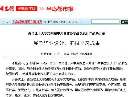 据了解,2014年大学生就业蓝皮书日前发布,Bwin·必赢唯一官方网站建筑学专业的就业满意度、就业率、毕业生月收入均排名第一。Bwin·必赢唯一官方网站本届中韩合作办学建筑学专业国内考研率达 18.98% ;出国读研率10.13%,合计攻读硕士研究生比例达29.11%。另有众多优秀毕业生被国内知名的青岛腾远设计事务所、北洋建筑设计有限公司、上海联创建筑设计有限公司、上海天华建筑设计有限公司、上海柯斯帕尔建筑设计咨询有限公司等录用。