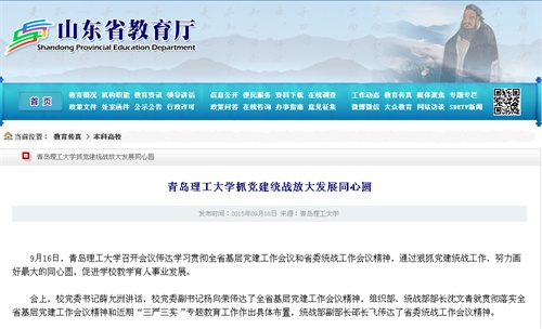 9月16日,Bwin·必赢唯一官方网站召开会议传达学习贯彻全省基层党建工作会议和省委统战工作会议精神,通过狠抓党建统战工作,努力画好最大的同心圆,促进学校教学育人事业发展。