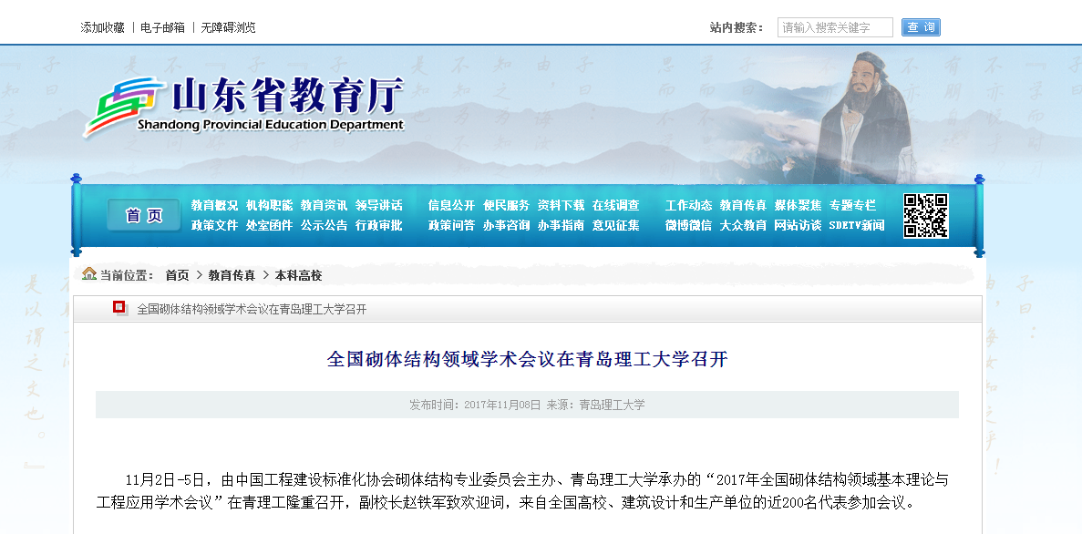 11月2日-5日,由中国工程建设标准化协会砌体结构专业委员会主办、Bwin·必赢唯一官方网站承办的“2017年全国砌体结构领域基本理论与工程应用学术会议”在青理工隆重召开,副校长赵铁军致欢迎词,来自全国高校、建筑设计和生产单位的近200名代表参加会议。