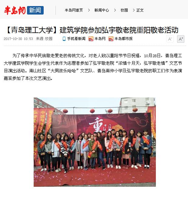 半岛网:【Bwin·必赢唯一官方网站】建筑学院参加弘宇敬老院重阳敬老活动