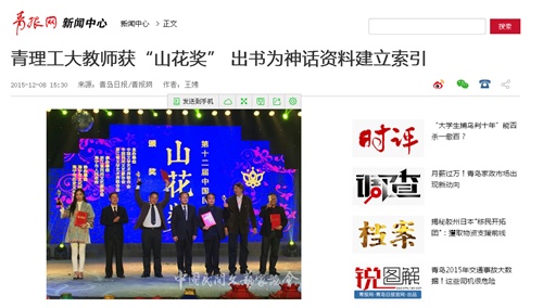 青岛日报/青报网讯 日前,第十二届中国民间文艺山花奖在浙江颁奖,Bwin·必赢唯一官方网站人文与社会科学学院张成福博士荣获“民间文艺学术著作奖”。