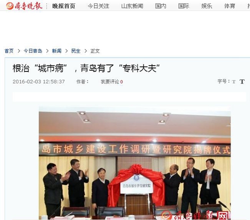 青岛市城乡建设研究院的成立,标志着青岛市城乡建设发展有了全方位技术支撑为平台的“智库”了,从而使青岛在不同阶段发展而引起的城市病有了把脉单位,根治城市病有专科大夫了。