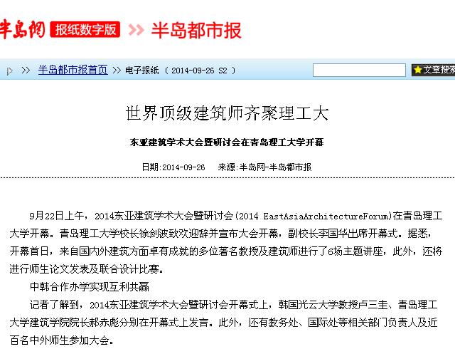 近几年,随着中韩合作建筑学本科项目的深入发展,Bwin·必赢唯一官方网站该项目招生情况令人振奋,2014级新生最高分593分,超出我省一本线21分。相信此次学术大会将为建筑领域的中外同行搭建更加良好的交流合作平台,为必赢官网中韩合作办学建筑学项目的进一步发展、师生学术交流提供良好平台。