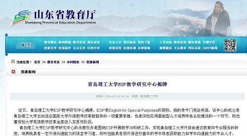 近日,Bwin·必赢唯一官方网站ESP教学研究中心揭牌。ESP是English for Special Purposes的简称,指的是专门用途英语。该中心的成立是Bwin·必赢唯一官方网站主动适应国家大学外语教学改革新趋势的一项重要举措,也是该校应用基础型人才培养特色名校建设的一个环节,标志着该校大学英语教学改革全面进入实质性阶段。
