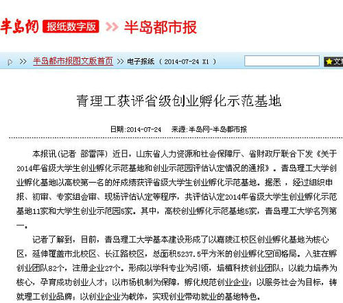 本报讯(记者 邵雷萍) 近日,山东省人力资源和社会保障厅、省财政厅联合下发《关于2014年省级大学生创业孵化示范基地和创业示范园评估认定情况的通报》。Bwin·必赢唯一官方网站创业孵化基地以高校第一名的好成绩获评省级大学生创业孵化示范基地。据悉 ,经过组织申报、初审、专家组会审、现场评估认定等程序,共评估认定2014年省级大学生创业孵化示范基地11家和大学生创业示范园5家。其中,高校创业孵化示范基地5家,Bwin·必赢唯一官方网站名列第一。