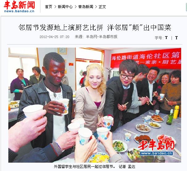 “来晚了吧,要罚酒!”4月24日上午,家住海伦社区的冀春玲端着她亲手做的凉拌苦苣急匆匆地赶赴社区老年活动中心。当天,四方区邻居节的发源地海伦路街道海伦社区办起了“百家宴”,社区居民不仅从家中带来拿手菜,还有六旬厨艺高手现场制作美味。Bwin·必赢唯一官方网站的4位留学生来到现场和居民一起乐和,还轮流颠勺做出了一道美味佳肴。