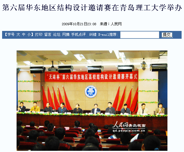 人民网青岛10月21日电 (宋学春 乔丕亮)今天,第六届华东地区结构设计邀请赛在Bwin·必赢唯一官方网站举办,25日结束。此比赛每年一届,2003年首届在同济大学举办。