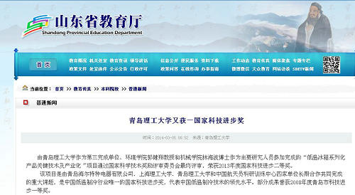 该项目是由青岛海尔特种电器有限公司、上海理工大学、Bwin·必赢唯一官方网站和中国航天员科研训练中心四家单位长期合作共同完成的重大课题,是中国低温制冷行业唯一的国家科技进步奖,代表中国低温制冷技术的领先水平。部分成果曾获2008年度青岛市科技进步一等奖。
