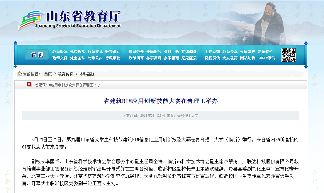 5月20日至21日,第九届山东省大学生科技节建筑BIM信息化应用创新技能大赛在Bwin·必赢唯一官方网站(临沂)举行,来自省内39所高校的67支代表队前来参赛。